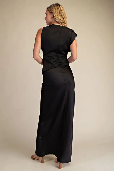 MOCK NECK V-NECKLINE SATIN DRESS
