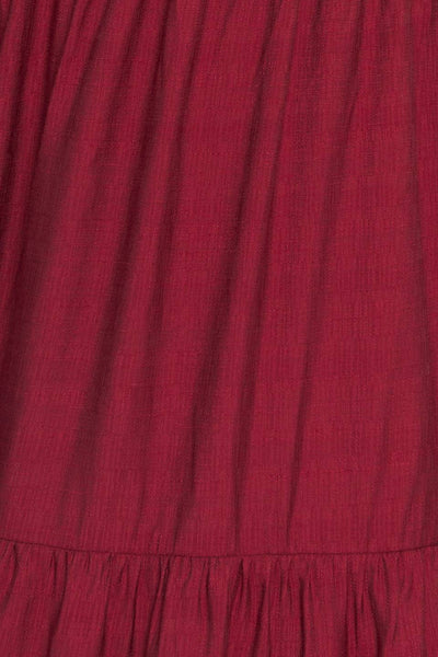 A solid woven maxi dress featuring cami top with layered sleeve, cinched front bodice, tiered skirt and smocked back bodice