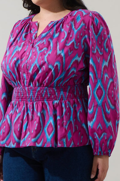 Your outfit just found its new best friend. Featuring a smocked waist, balloon sleeves, split neckline, and an abstract wave line pattern, it’s comfy, flirty, and made to move. Pair with jeans, heeled booties, and bold hoop earrings for a trendy night out look.