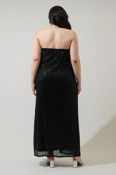 Shine with confidence in a dress designed to make every entrance unforgettable. This strapless sequin maxi dress is fully lined with a side invisible zipper for a flawless fit, making it the ultimate party ready piece. Pair it with metallic heels and a sleek clutch to complete your dazzling look.