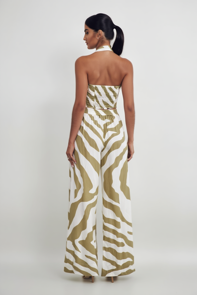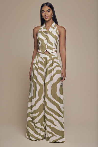 PRINTED SLEEVELESS VEST AND WIDE LEG PANTS SET 85% RAYON, 15% POLYESTER