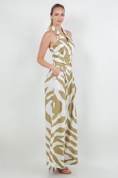 PRINTED SLEEVELESS VEST AND WIDE LEG PANTS SET 85% RAYON, 15% POLYESTER Size S(2) - M(2) - L(2)