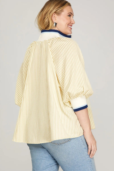 3/4 SLEEVE HALF ZIP STRIPED TOP